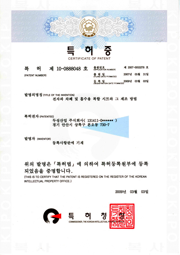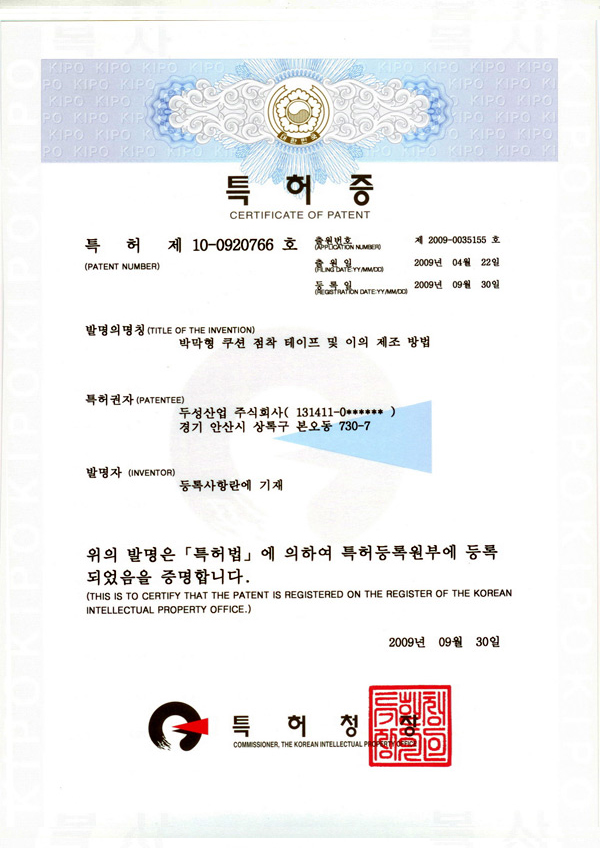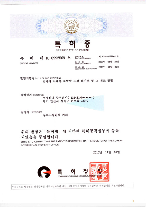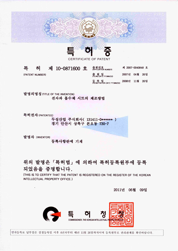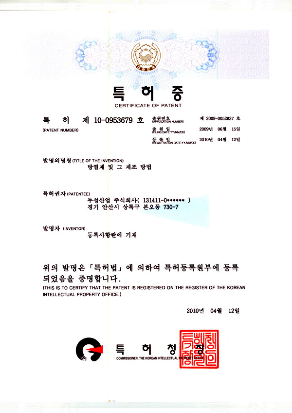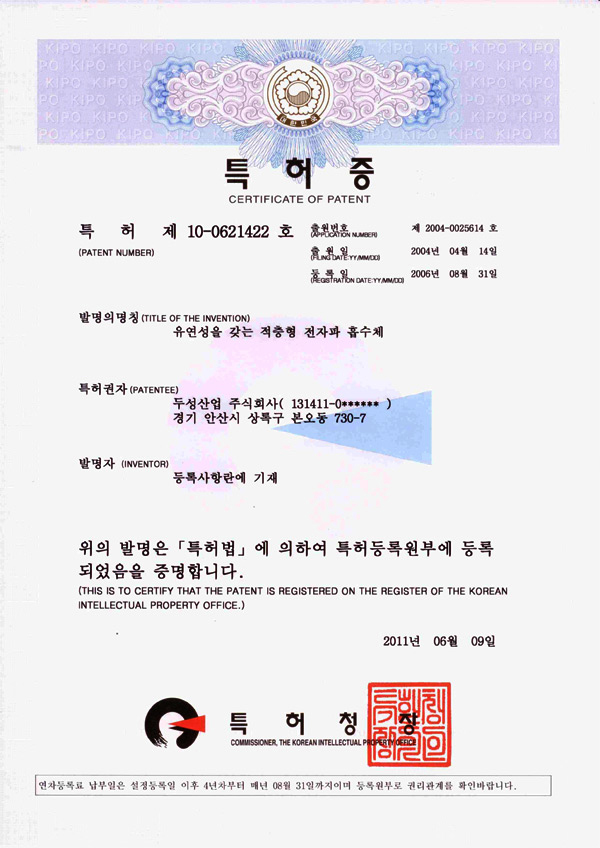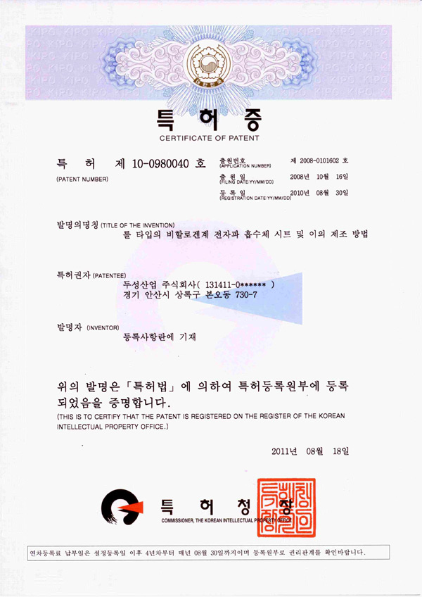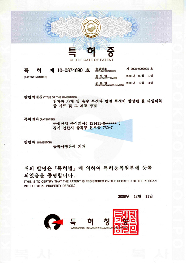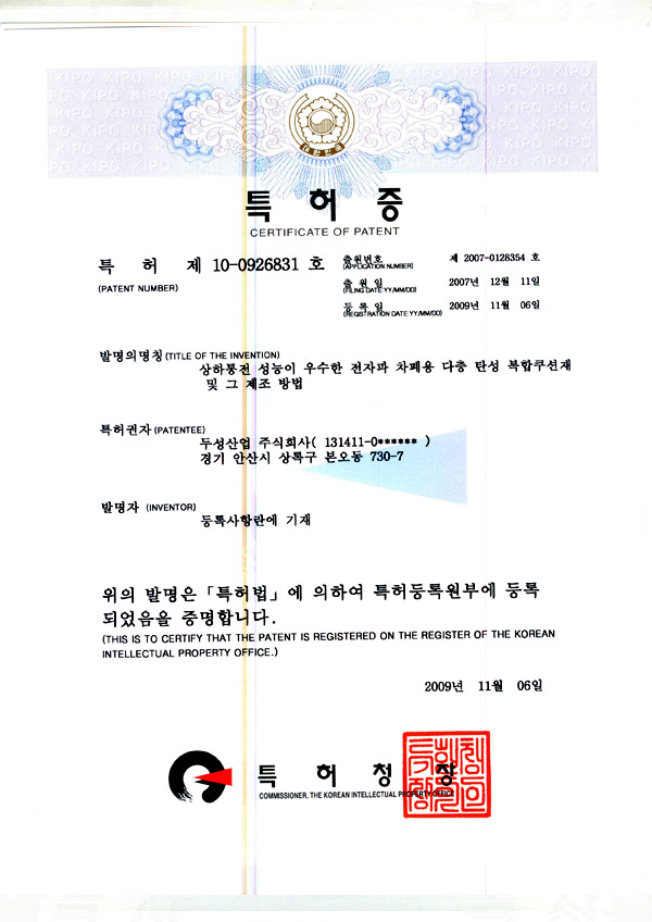 UL인증 | 니켈폼, 원단 | OCDT2.E311094 | UL | 2007.03.01 |