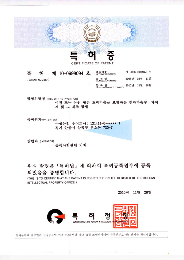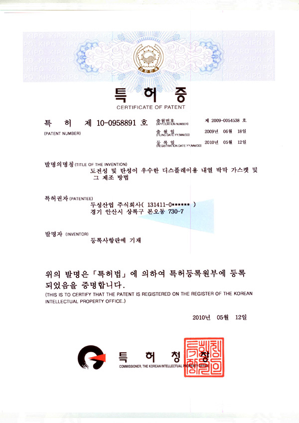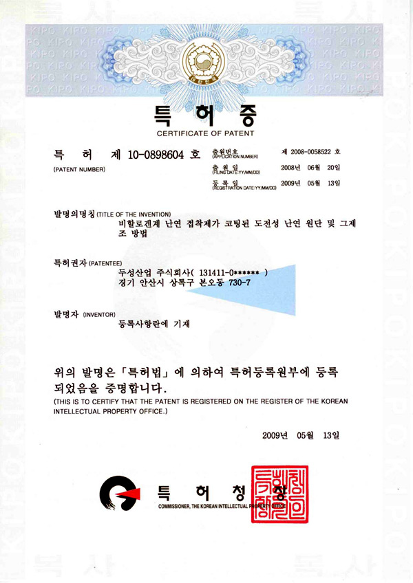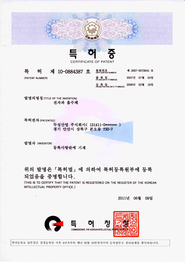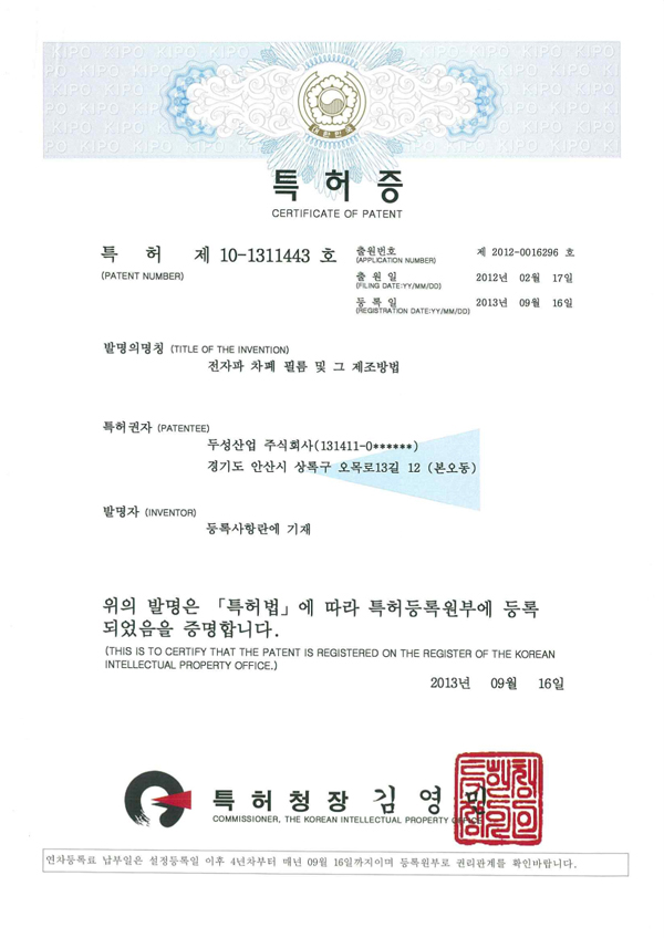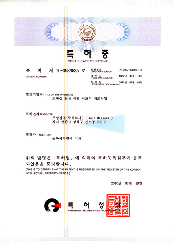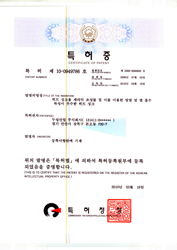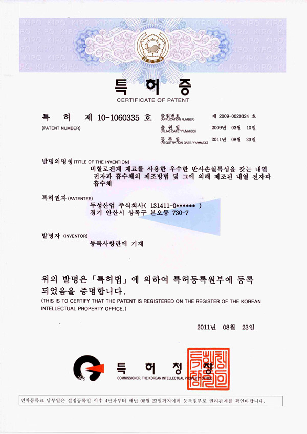 UL인증 | 니켈폼, 원단 | OCDT2.E311094 | UL | 2007.03.01 |