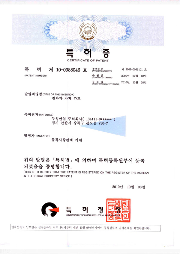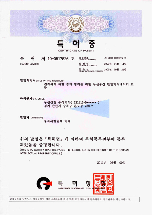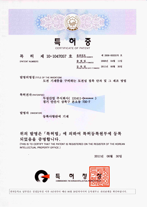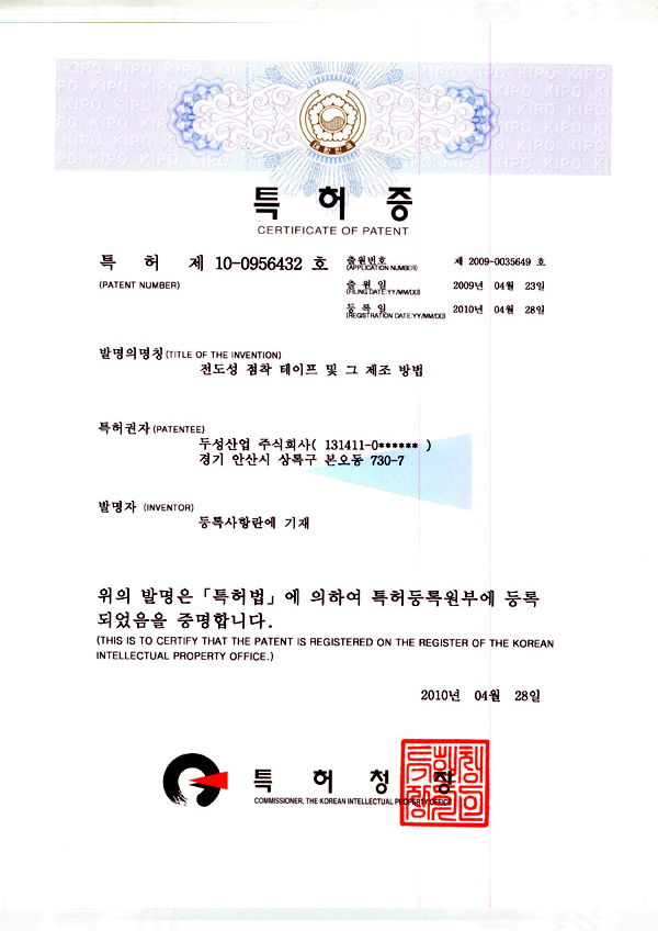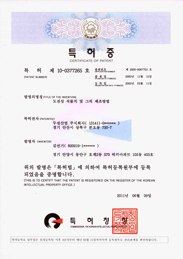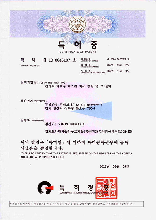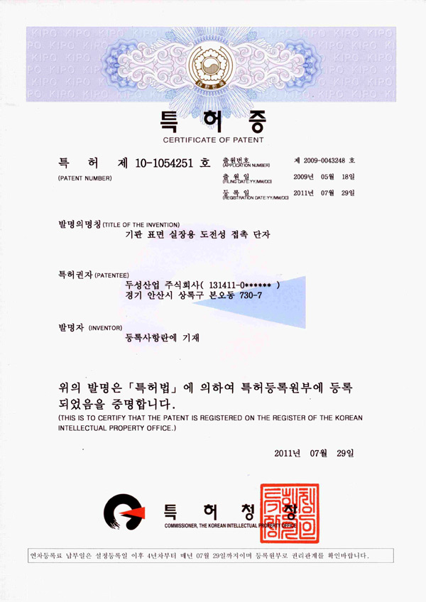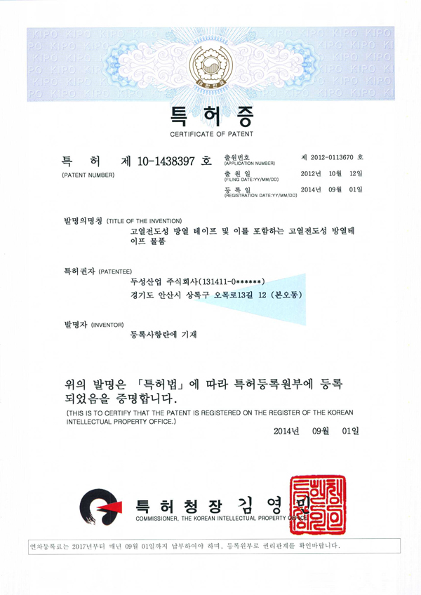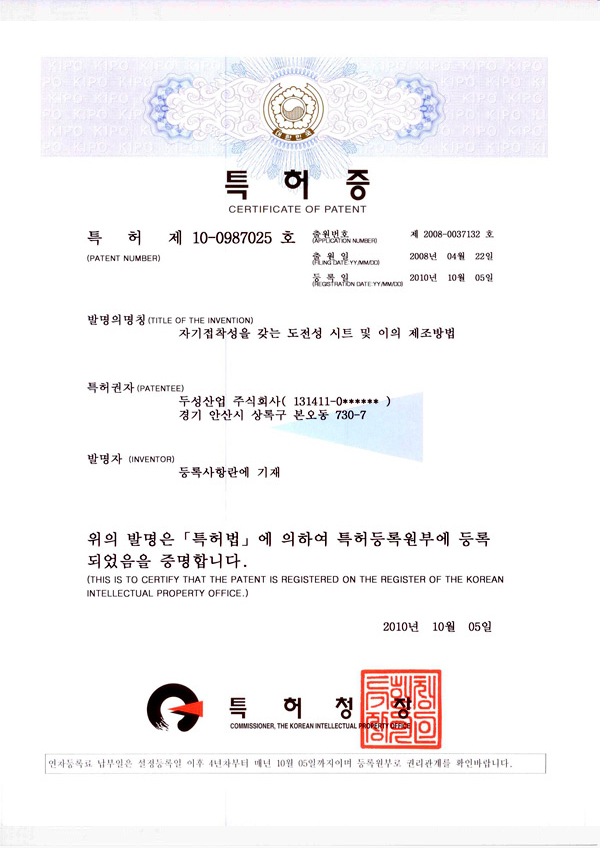 UL인증 | 니켈폼, 원단 | OCDT2.E311094 | UL | 2007.03.01 |