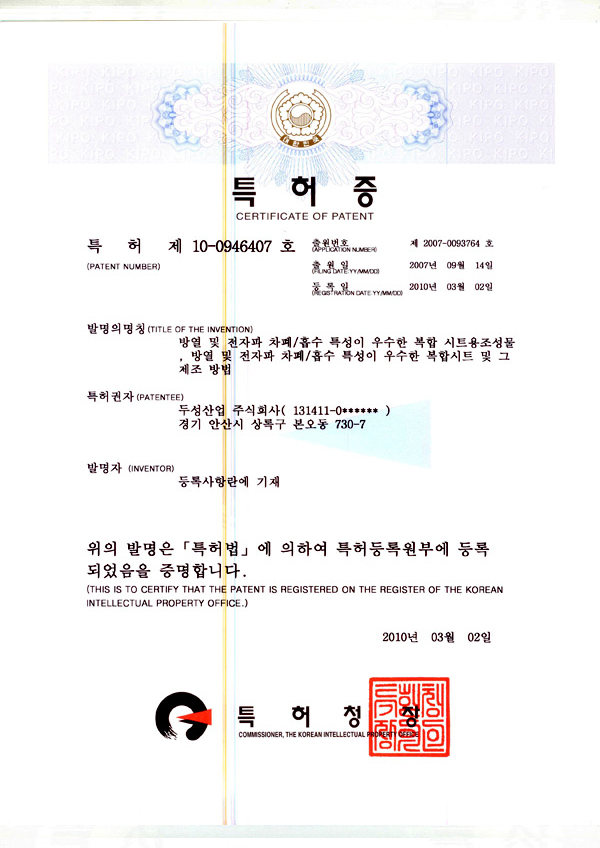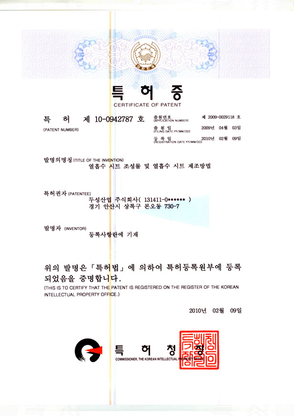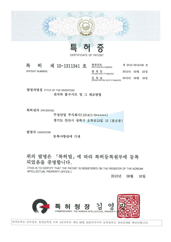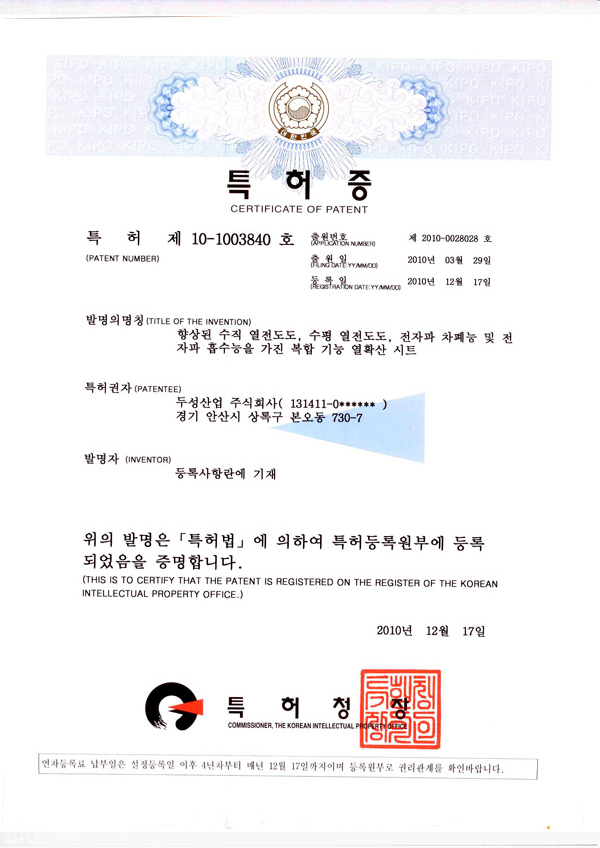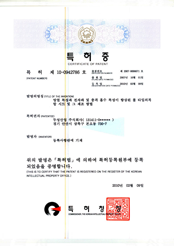 UL인증 | 흡수체, 열전시트 | QMFZ8.E311093 | UL | 2007.02.26 |